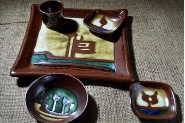 En la vertiente utilitaria usa esmaltes de bases feldespáticas mates o satinadas con hierro, cobalto, cobre y manganeso, quemadas en reducción.