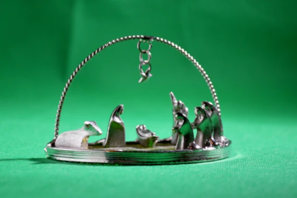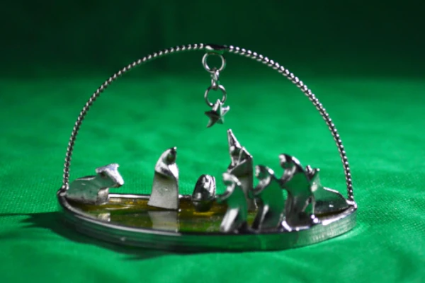 - Materiales de Calidad: Elaborada en níquel, la figura garantiza durabilidad y un acabado sofisticado. Las aplicaciones de vidrio tipo vitral añaden un toque de color y luminosidad, elevando la pieza con su brillo y detalle.