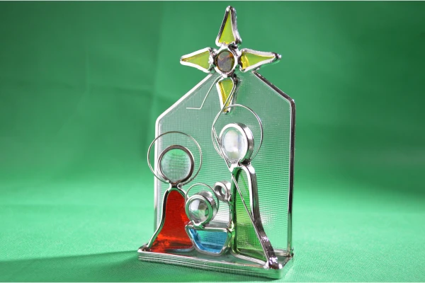 - Materiales de Calidad: Elaborada en níquel, la figura garantiza durabilidad y un acabado sofisticado. Las aplicaciones de vidrio tipo vitral añaden un toque de color y luminosidad, elevando la pieza con su brillo y detalle.